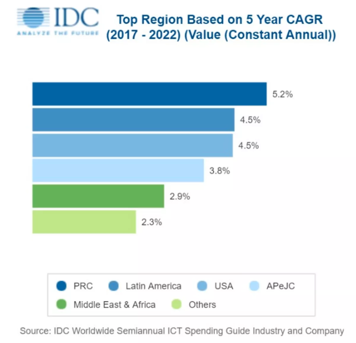However, the market will still experience steady growth as IDC expects spending on hardware, software, services, and telecommunications to reach US$4.6 trillion by 2022 with an average growth rate of 4 percent per year.